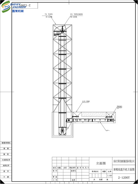 此項目為山東泰安地區飼料廠項目,始建于2018年,項目的工作流程為糧食通過大車拉來,糧食的卸車方式為兩側卸車,遂糧食經過卸糧坑底部的刮板機輸送到E1提升機,然后流入雙層圓筒初清篩去除大小雜質,后流入E2提升機,通過鋼板倉頂的刮板機配合電動閘門的開合分別控制進入2臺水泥錐底鋼板倉。